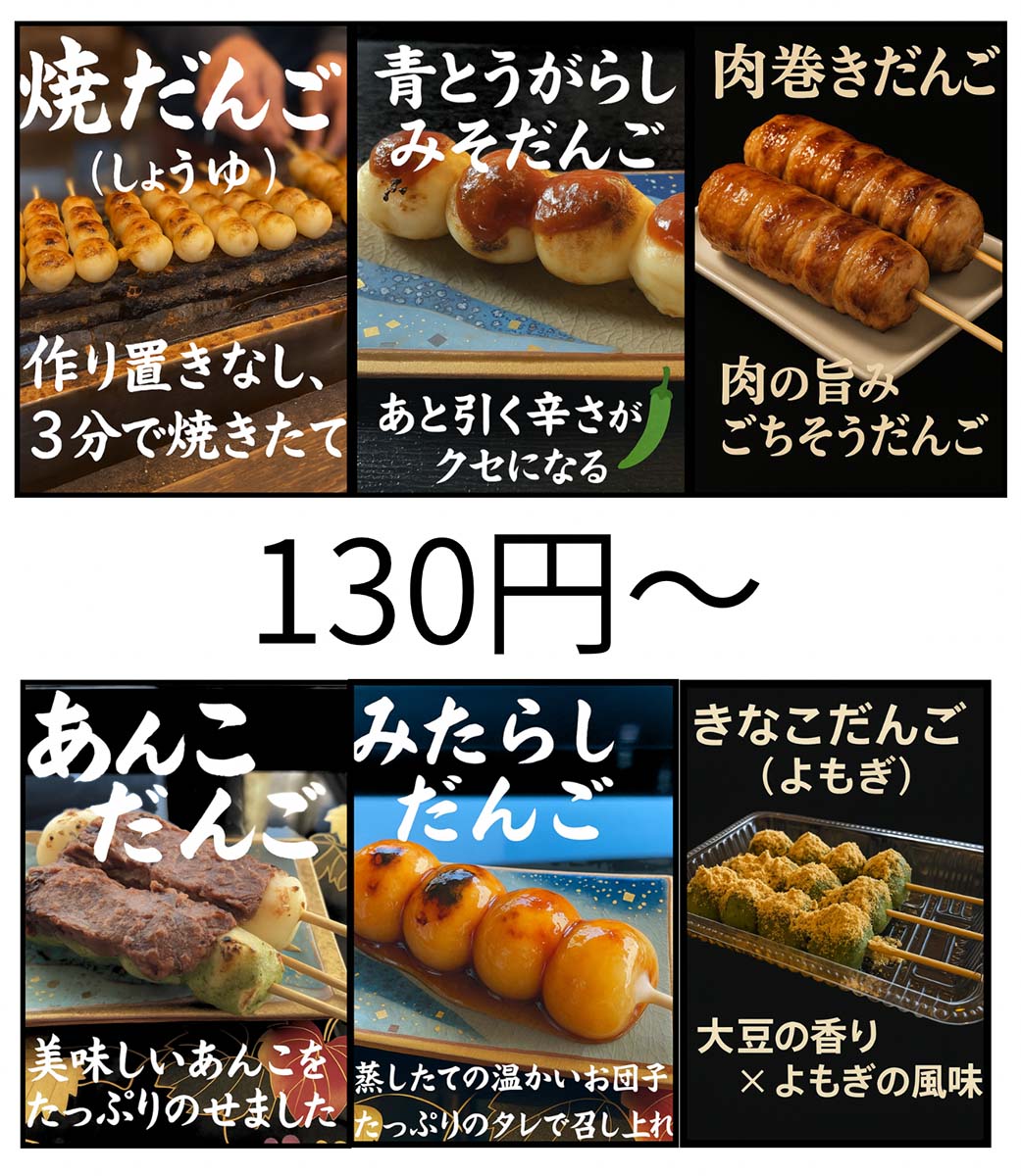 焼きだんご・和菓子・おしるこ・甘酒 等