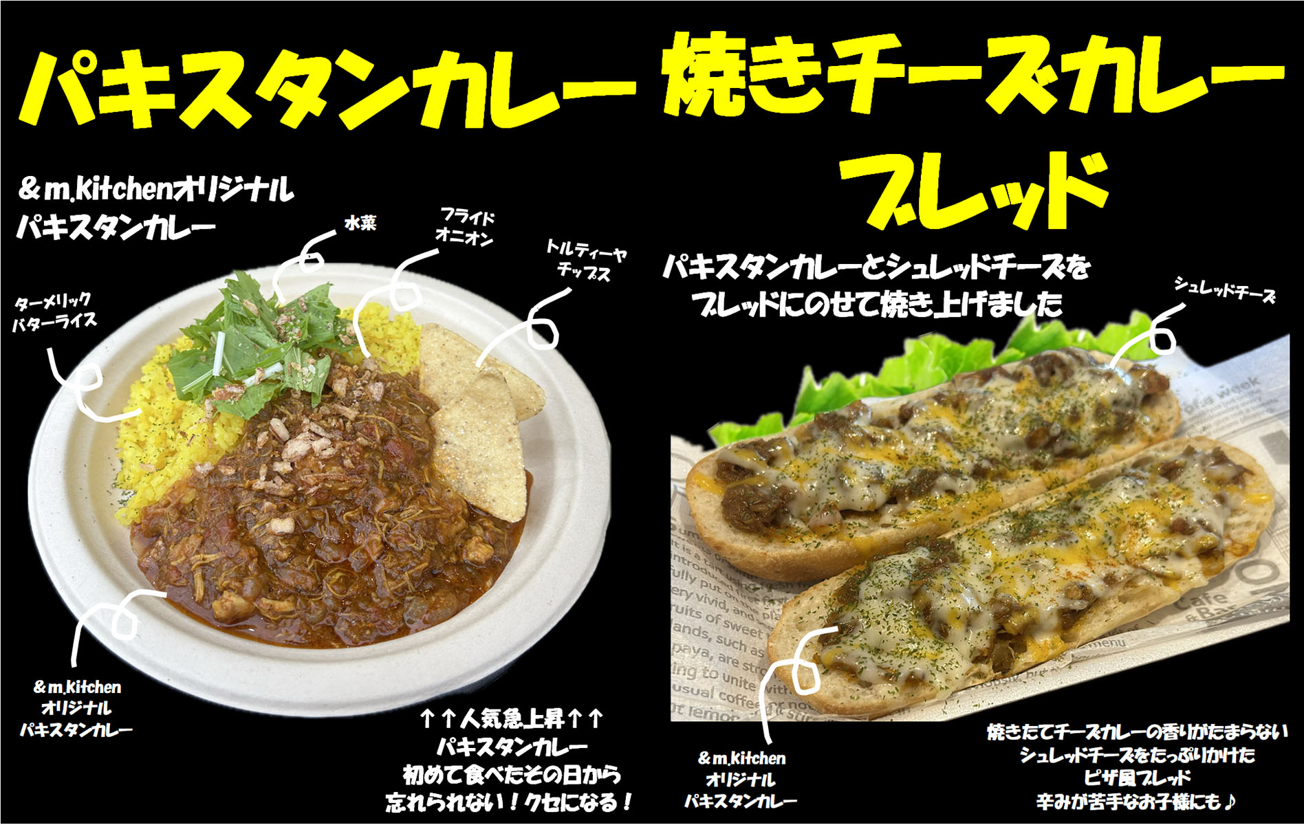 パキスタンカレー、焼きチーズカレーブレッド、ドリンクなど
